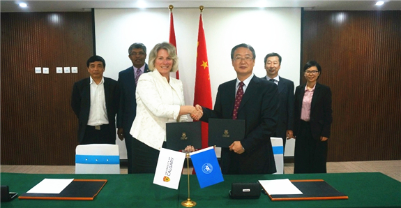 On September 23, Vice President of Beihang University Professor Huang Haijun signed a Memorandum of Understanding in Beijing with President of the University of Calgary Dr. Elizabeth Cannon.