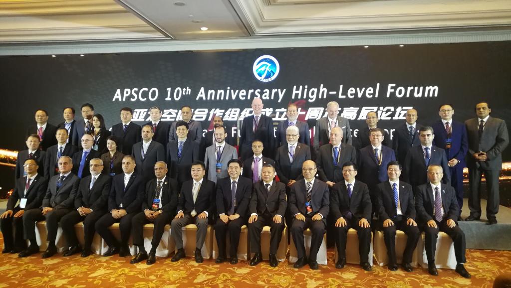 On November 14, the Asia-Pacific Space Cooperation Organization (APSCO) 10th Anniversary High-Level Forum was held in Beijing. Beihang President Prof. Xu Huibin and Vice President Prof. Huang Haijun attended the forum.