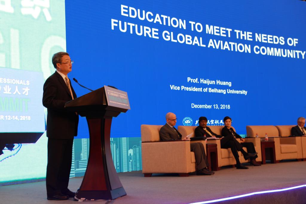In the panel “Innovations and Solutions to Address NGAP Challenges”, Professor Huang Haijun delivered a speech analyzing the future trends of global aviation and the demand for the next generation of aviation professionals. He introduced in particular the educational principles of Beihang University and its innovative practices in training aviation talent. Prof. Wen Dongsheng, Dean of the School of Aeronautic Science and Engineering and the School of General Engineering, spoke at the panel “The Way Forward” about the approaches to train professionals with an international vision and innovative minds.